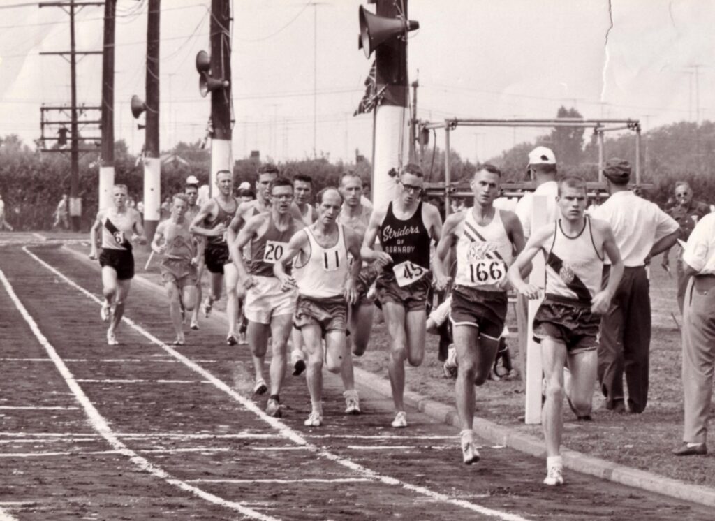 Jim Platt (Fig. 9) was the Assassins founding coach and provided the vision, leadership, and enthusiasm that are at the foundation of much of what the Assassins RFC is today. Jim started his athlete career as a hockey player and cross-country runner. Coached at Danforth Tech High School by the legendary Hector “Hec” Crighton, Jim was an outstanding cross country and steeple chase runner. After high school, Jim continued his success in track and field with the East York Track Team travelling extensively during 1960-1962. (Fig. 10) shows a track event with Jim Platt (#166) running just behind Olympian Bruce Kidd.