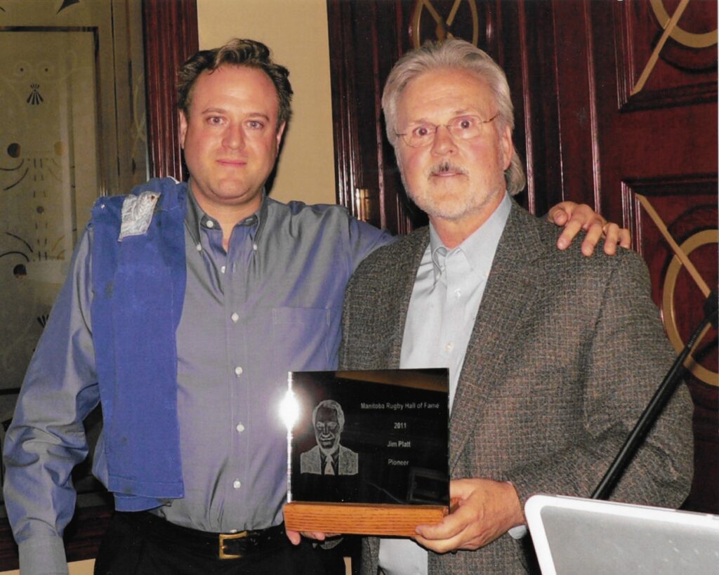 Despite his tremendous success as an amateur hockey coach, Jim remained most proud of his accomplishments on the rugby field. He was especially looking forward to his impending induction into the Manitoba Rugby Hall of Fame (Pioneer) on the evening of October 15, 2011. Sadly, he passed away suddenly only weeks before his induction, on September 6, 2011, at his Markham, Ontario home. Jim’s son, James Jr., accepted the Hall of Fame award on his father’s behalf (Fig. 13). Jim would have been so proud to see that the Assassins RFC has become such a formidable force in Manitoba Rugby.